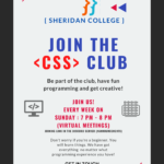 The Coding Syndicate of Sheridan (CSS) is a student-driven club offering coding workshops to help members learn, practice and deepen their skills. It helps its members grow in their coding knowledge and connects students with like interests.
